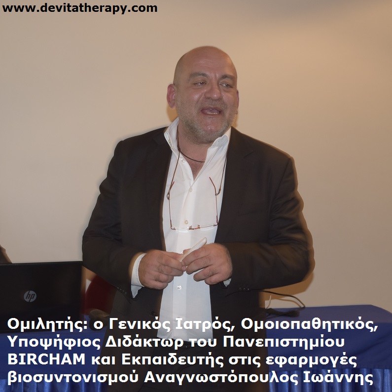 Σάββατο 14 Δεκεμβρίου, ξενοδοχείο Queen Olga, ομιλητής: ο Φυσικοθεραπευτής, ειδικός στην Κινέζικη Ιατρική & ειδικός στις εφαρμογές του βιοσυντονισμού Λαδάς Ευστράτιος, παρουσίαση του βιοσυντονισμού, των συσκευών DeVita και των μοναδικών διατροφικών σκευασμάτων της σειράς DeLixir, ώρα έναρξης 19:00.